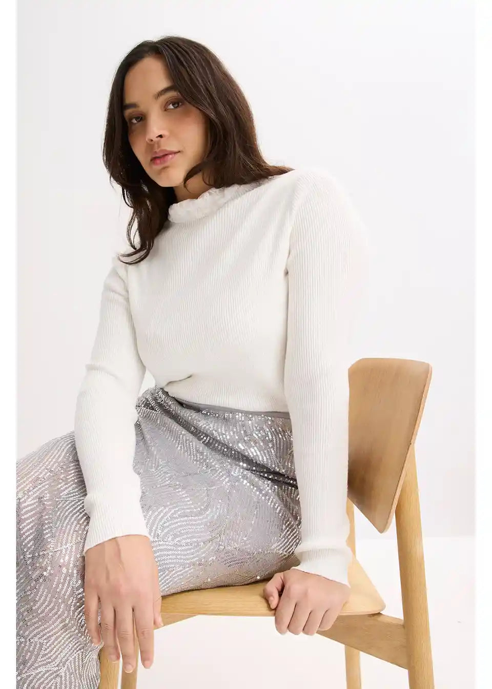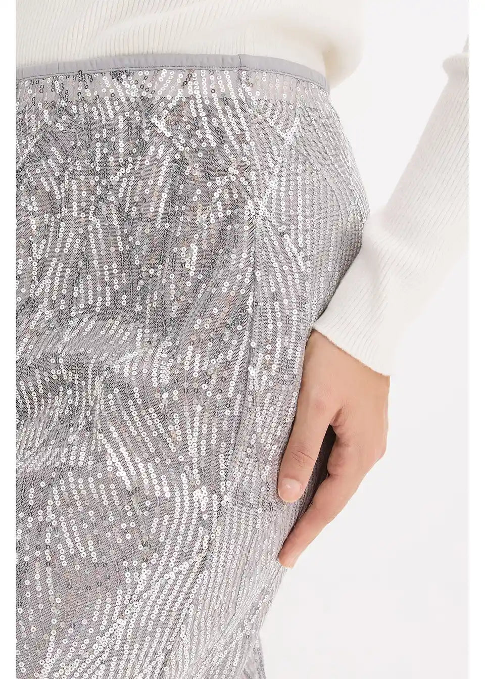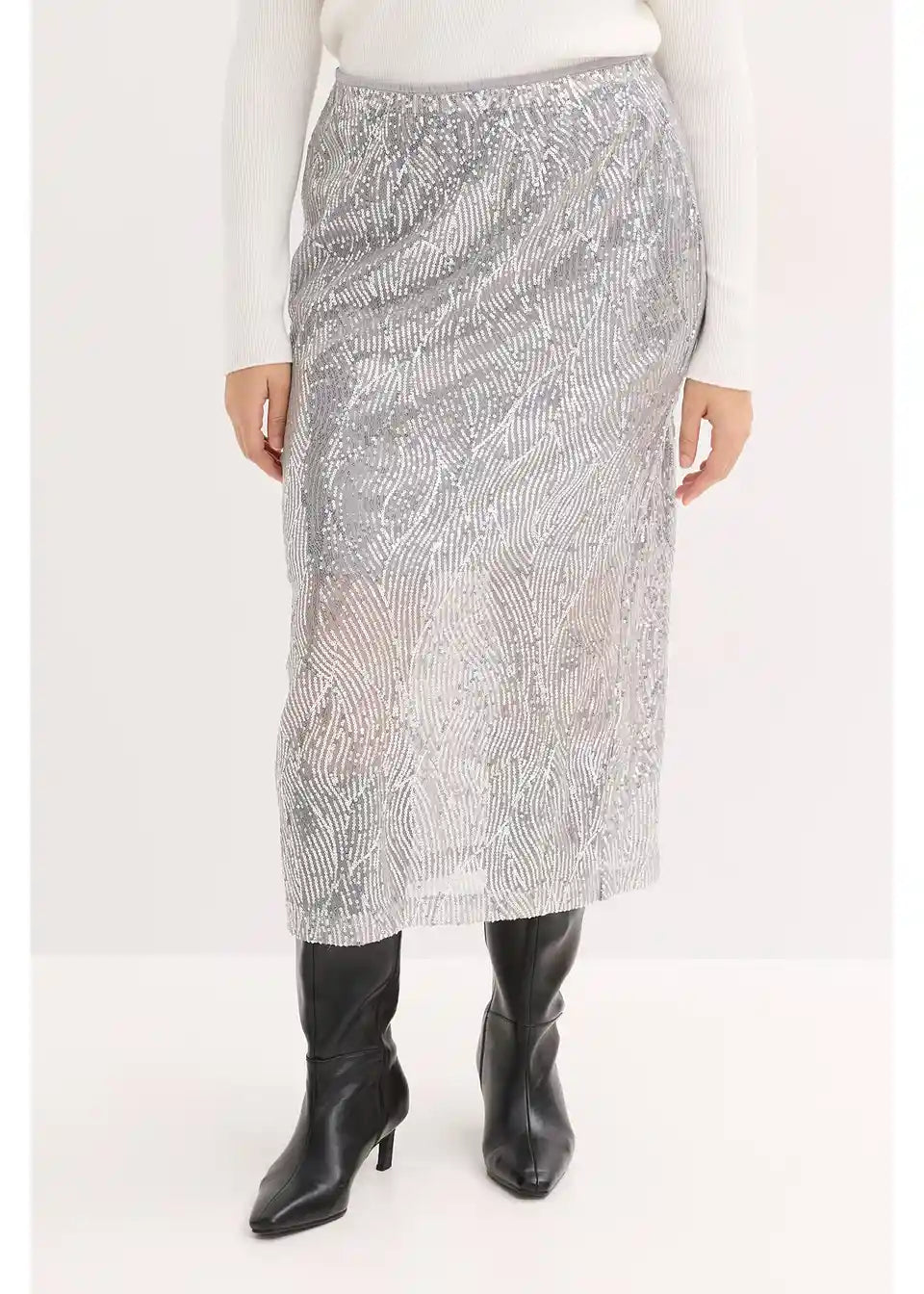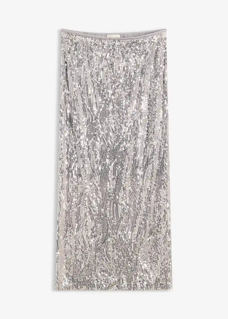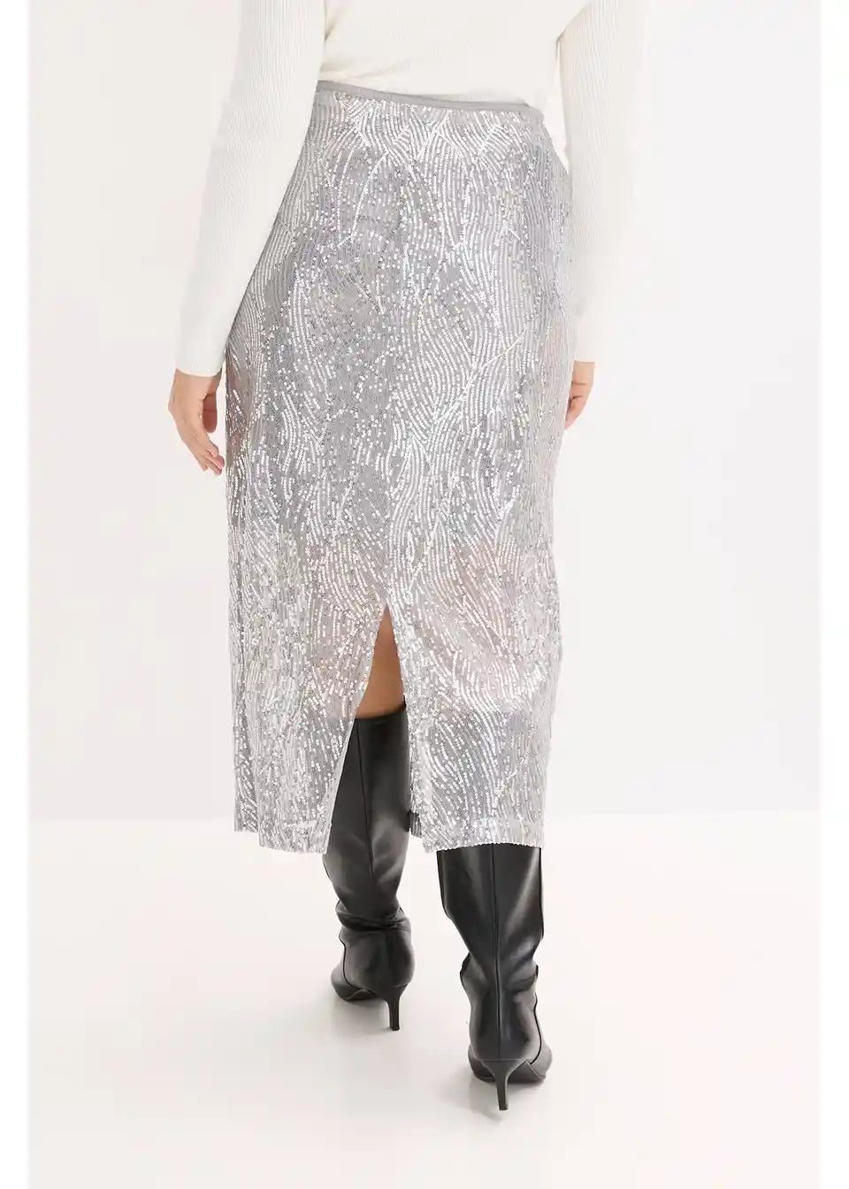 modischer Pailletten-Midirock mit Gummibund. Gefüttert.