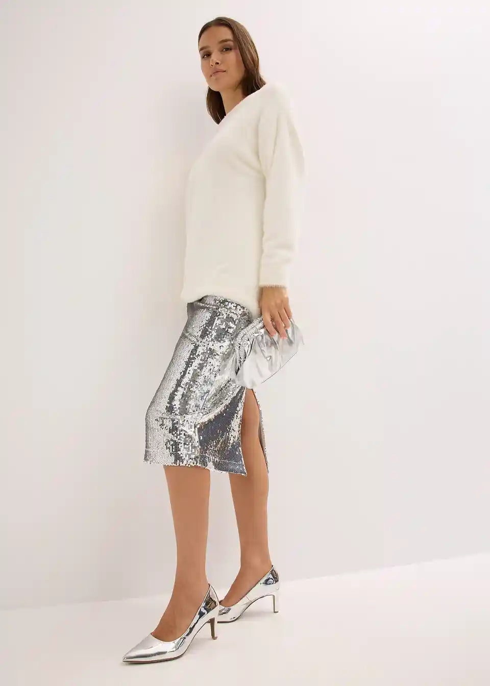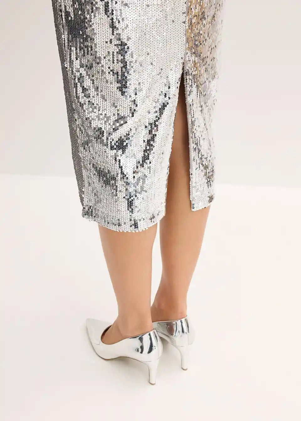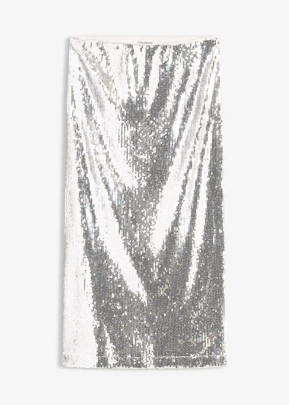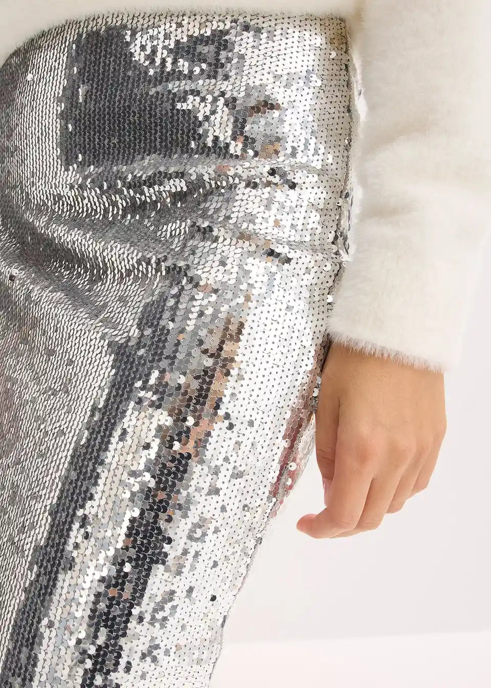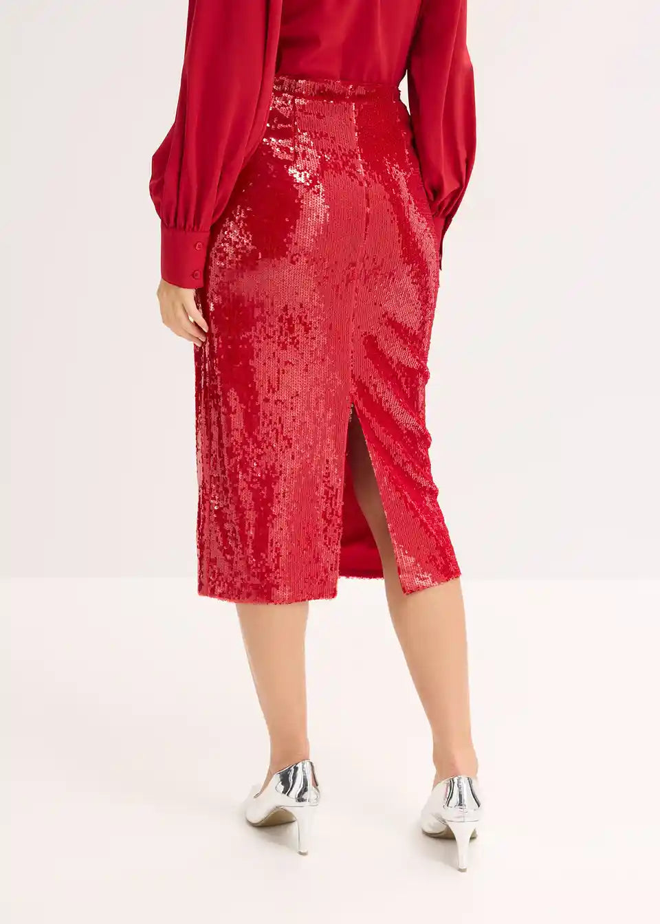 modischer Pailletten-Rock in Midilänge mit innenliegendem Gummibund und Schlitz hinten am Saum