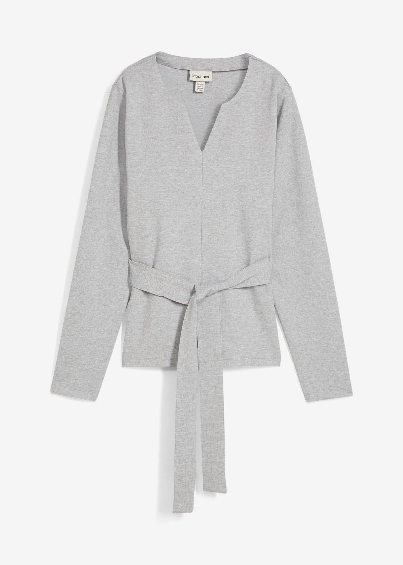 Majica z dolgimi rokavi s širokim trakom za zavezovanje iz viskozne mešanice