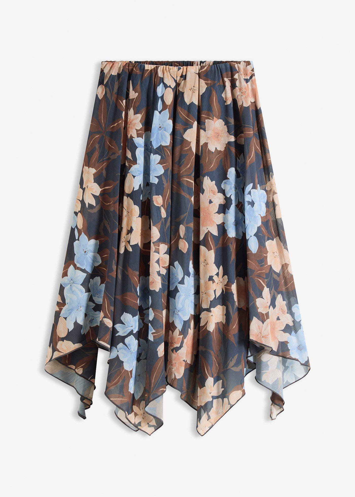 Midi krilo z asimetričnim spodnjim robom iz šifona