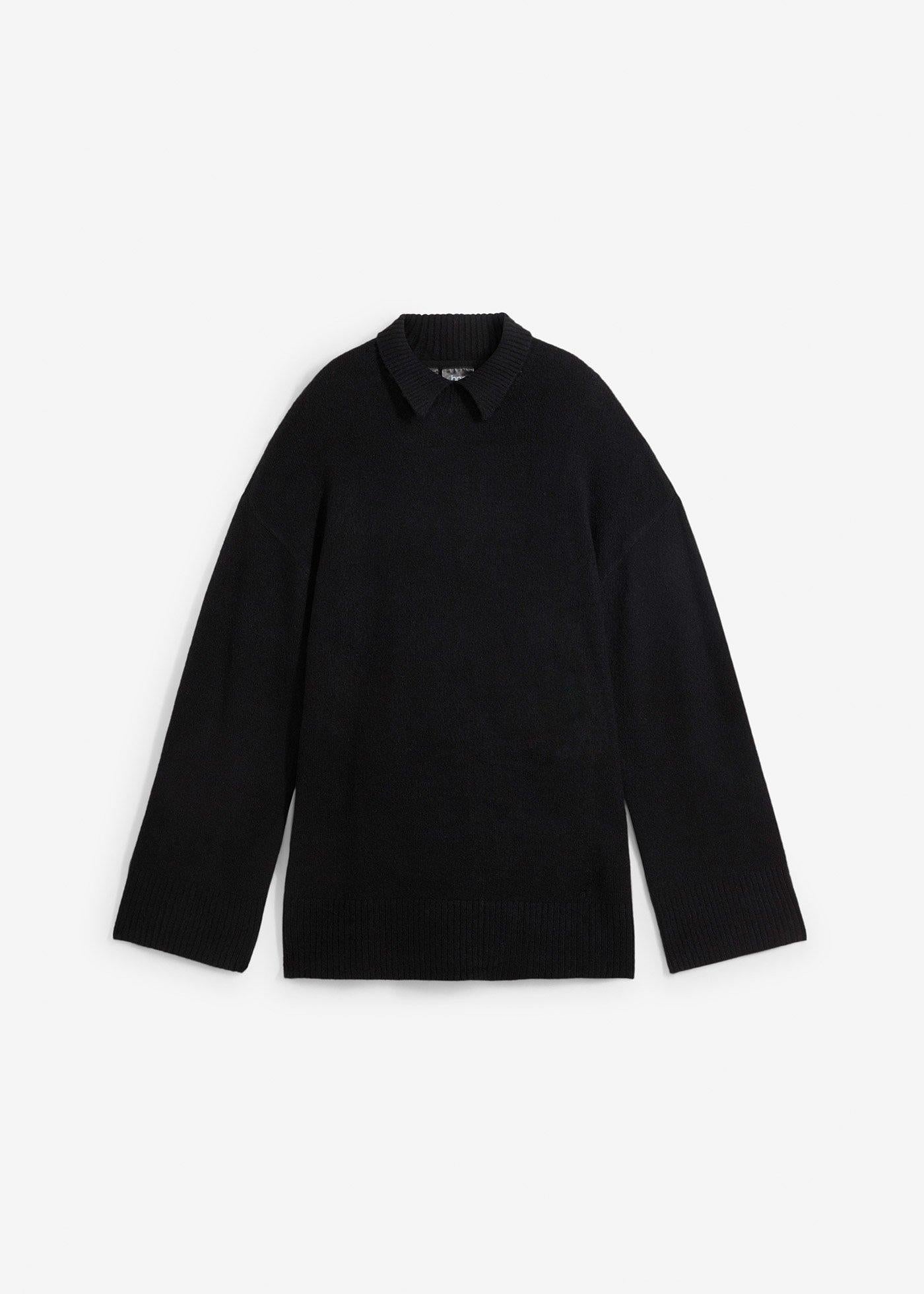 Ohlapen pulover z ovratnikom in stranskimi razporki