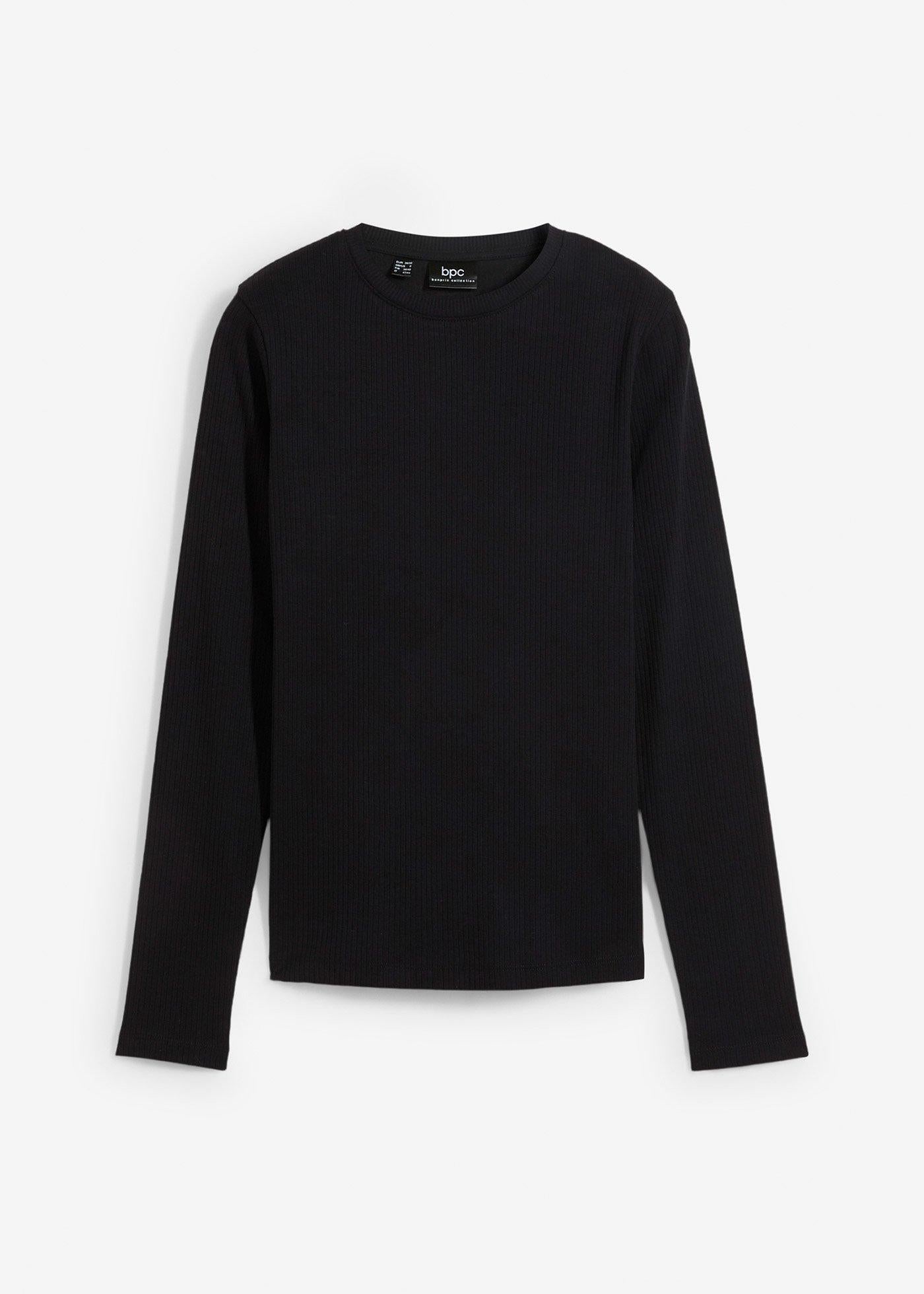 Rebrasta majica z dolgimi rokavi iz čistega bombaža