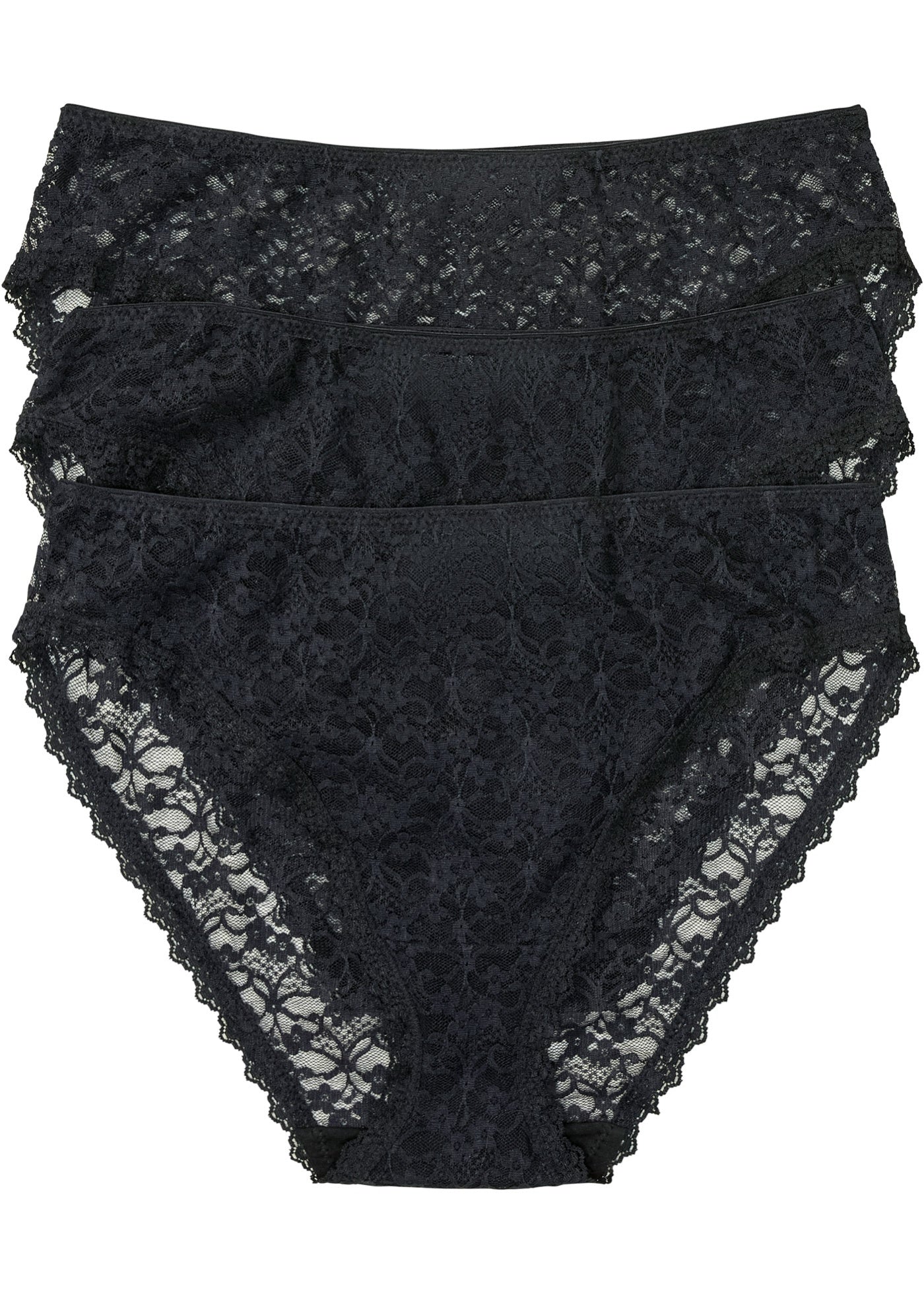 Visoko spodrezane visoke spodnjice iz reciklirane čipke (3 kosi)